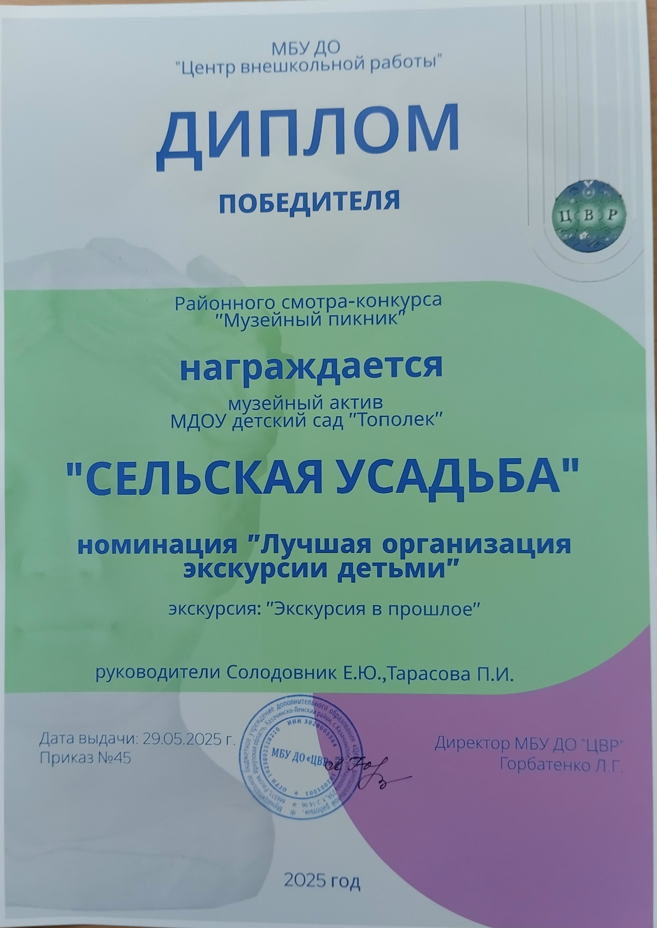 Включение в общероссийский реестр музеев образовательных организаций музея МДОУ "Сельская усадьба - июль 2024г