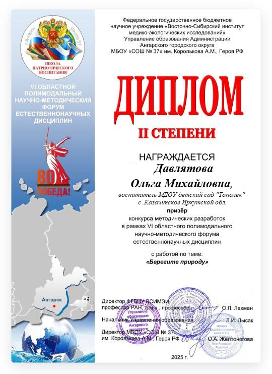 VII Всероссийский онлайн форум-конференция "Воспитатели России": "Здоровые дети - здоровое будущее", 2020г